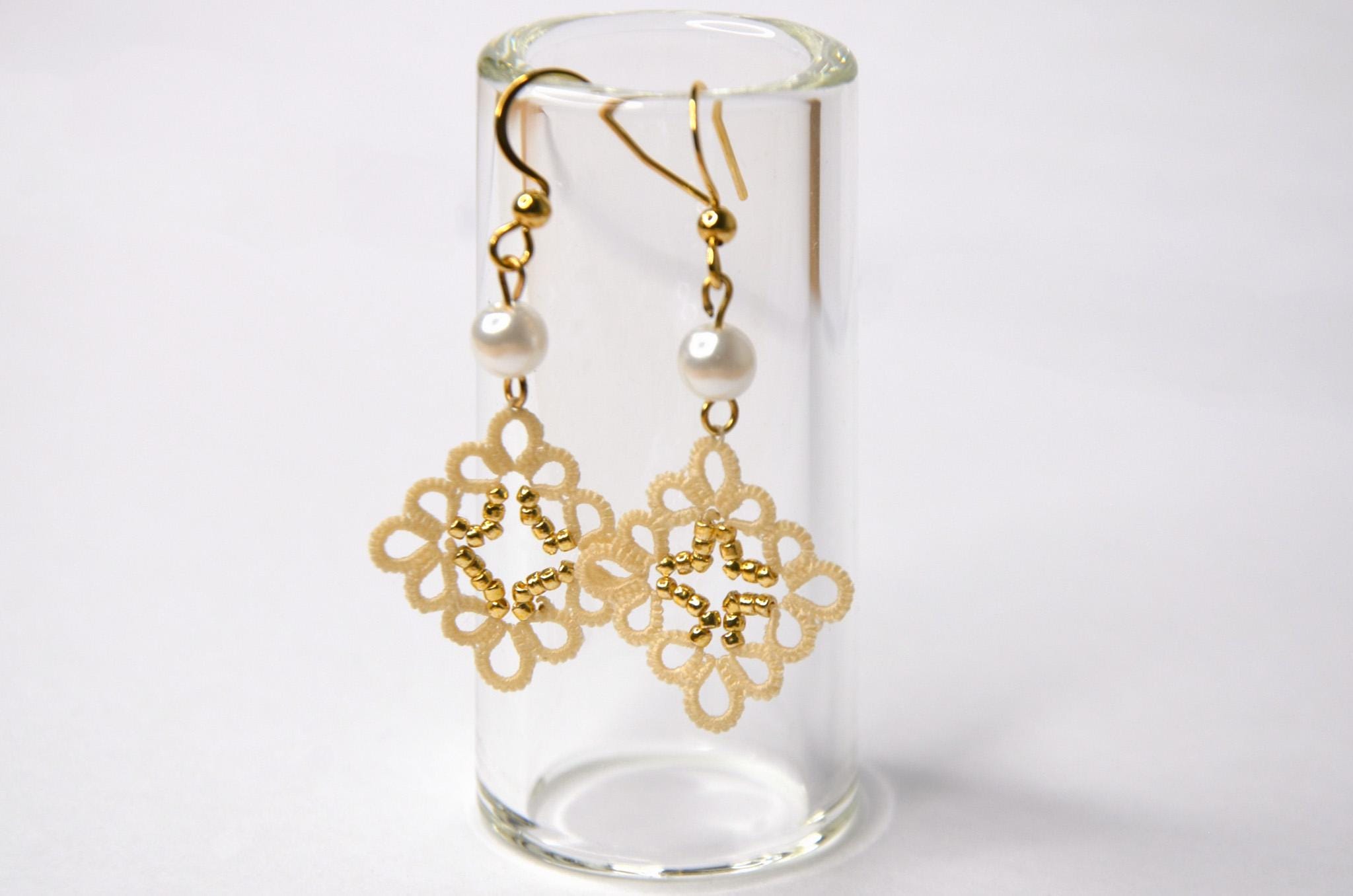 These hand-tatted earrings with intricate Japanese seed beads bring a delicate, bohemian charm to your accessory collection. Carefully crafted using traditional lace tatting techniques, these lightweight earrings are a perfect blend of vintage elegance and modern design.