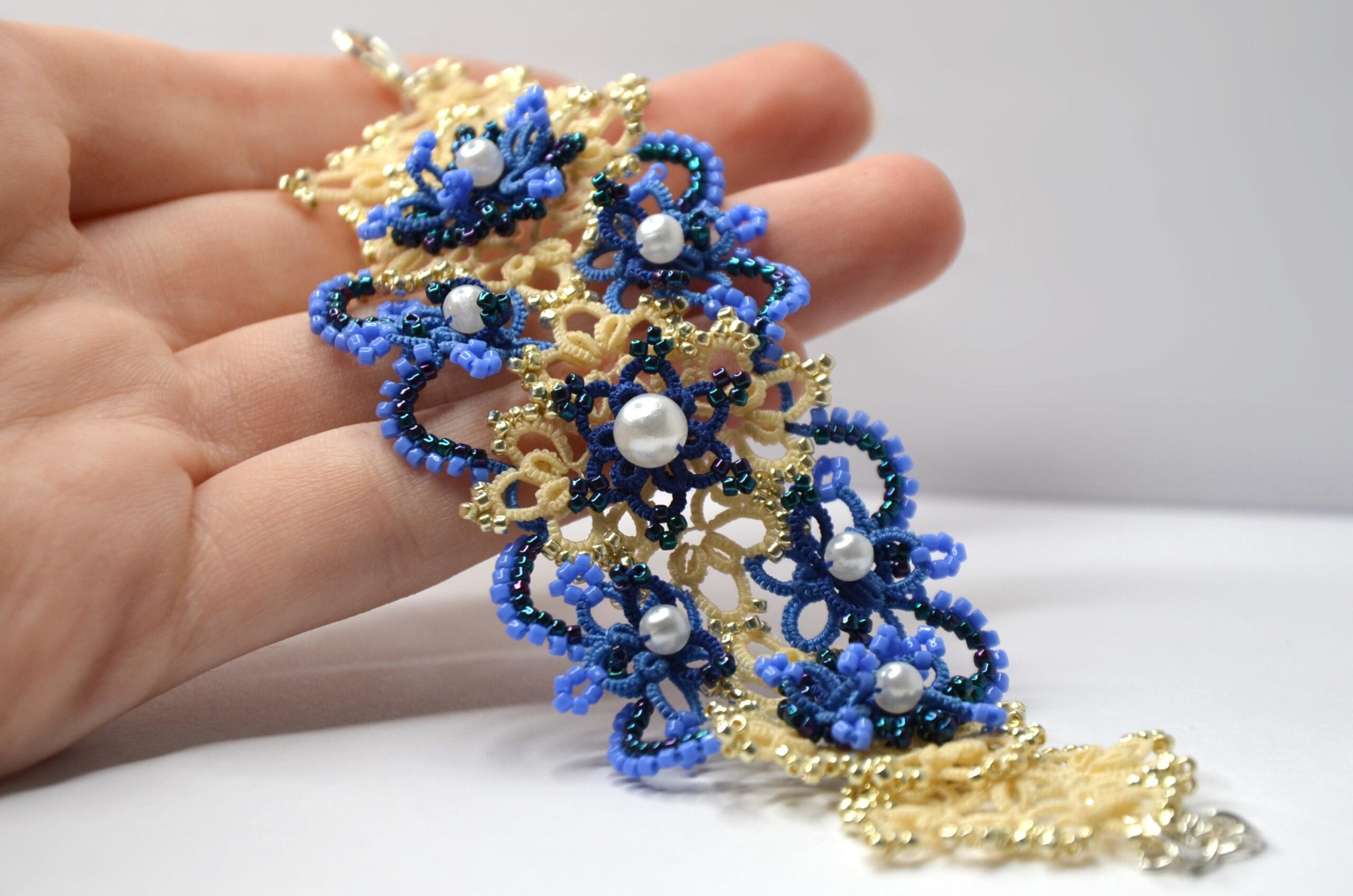 Discover timeless elegance with this handmade Frivolite bracelet, crafted using traditional tatting techniques. Its delicate floral lace design adds a romantic, vintage-inspired charm perfect for both casual and formal occasions.