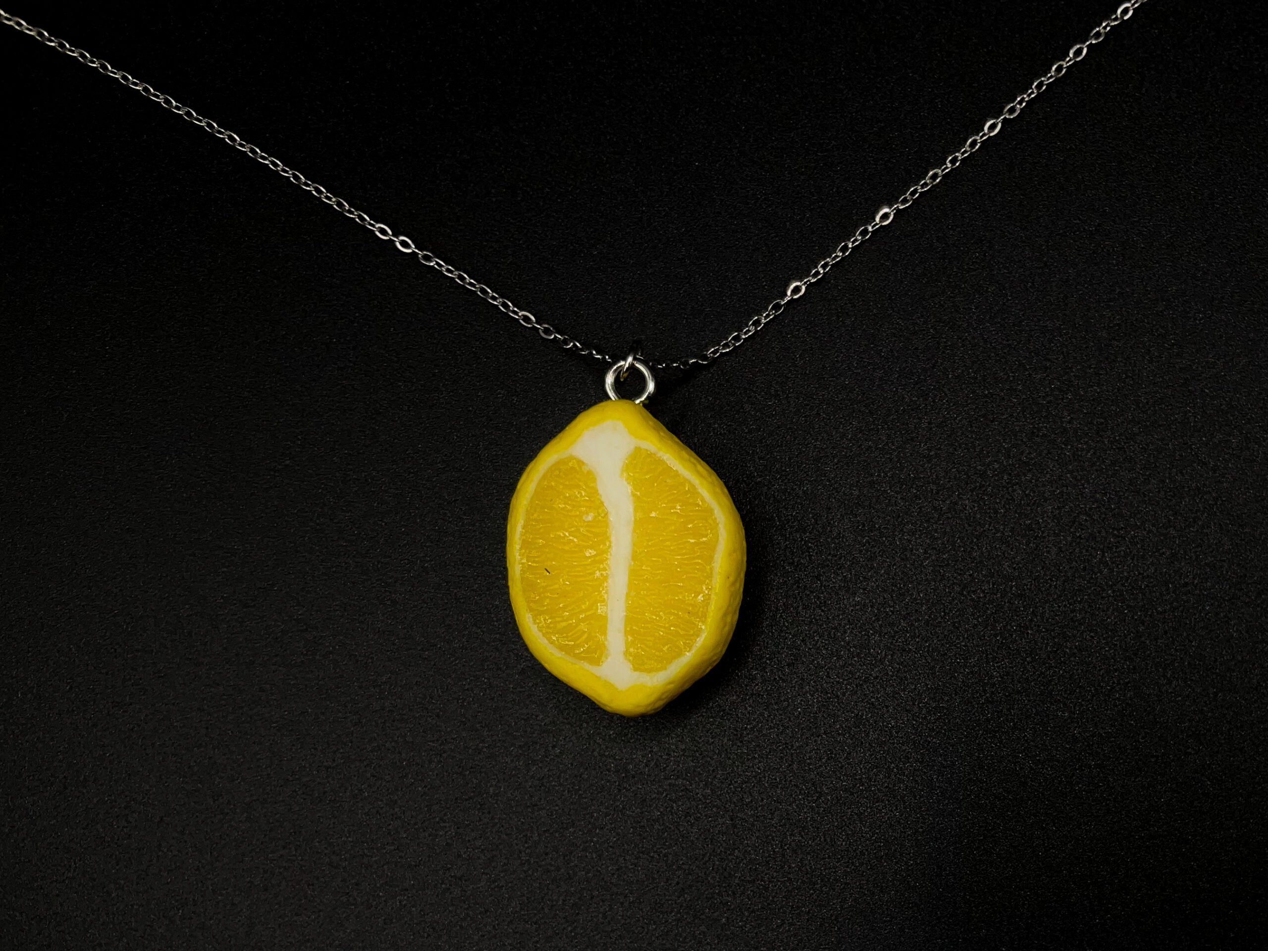 realistic lemon pendant, polymer clay jewelry, handmade fruit necklace, citrus charm, stainless steel chain necklace, juicy lemon slice, realistic food jewelry, gift for her, summer jewelry, melwasar